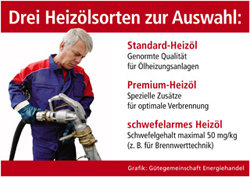 sup.- Was darf’s denn sein? Wenn Hausbesitzer Heizöl bestellen, haben sie heute die Wahl aus mehreren Produkten mit unterschiedlichen Qualitätseigenschaften. Allen gemeinsam ist die Oberbezeichnung Heizöl EL. Diese Abkürzung steht für „extra leicht“ – im Gegensatz zum „schweren“ Heizöl, das überwiegend in Kraftwerken und bei der Industrie zum Einsatz kommt. Welches Heizöl der richtige Brennstoff für die häusliche Wärmeerzeugung ist, hängt nicht zuletzt von der jeweiligen Heizungsanlage ab. Das so genannte Standard-Heizöl hat sich als wirtschaftlicher Brennstoff für herkömmliche Heizkessel bewährt. Seit Anfang 2008 darf es nur noch einen Schwefelgehalt von maximal 1.000 Milligramm pro Kilogramm aufweisen.
