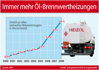 Im Jahr 2008 handelte es sich nach Angaben des Bundesindustrieverbandes Deutschland Haus-, Energie- und Umwelttechnik (BDH) bereits bei 9,5 Prozent aller hierzulande verkauften Wärmeerzeuger um Öl-Brennwertkessel. Ein beachtlicher Wert, wenn man bedenkt, dass dieses Marktsegment erst im Jahr 2000 mit einem Anteil von bescheidenen 0,5 Prozent überhaupt in der Statistik auftauchte. Seitdem ist das Interesse an den Öl-Brennwertgeräten kontinuierlich gewachsen. Sie haben heute schon einen Anteil von mehr als 50 Prozent aller verkauften Ölheizungsanlagen. Der Boom hat jetzt sogar entscheidend dazu beigetragen, dass eine neue Heizöl-Qualität entwickelt wurde: Das so genannte schwefelarme Heizöl kann generell in allen Ölheizgeräten eingesetzt werden, eignet sich aber speziell für Öl-Brennwertkessel, weil es beispielsweise Probleme mit dem anfallenden Kondensat solch einer Anlage verhindert.