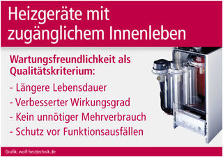 sup.- Der heiztechnischen Entwicklung haben wir es zu verdanken, dass die Wärmeerzeuger in den Wohngebäuden immer kleiner werden. Kompakte, aber leistungsstarke Wandheizgeräte lassen sich heute unauf-fällig fast überall im Haus installieren. Das verbessert die Wohnlichkeit, schafft gleichzeitig jedoch neue Her-ausforderungen an die Geräte-Konstruktion. Denn leider verhindern die handlichen Ausmaße oft die leichte Erreichbarkeit einzelner Bauteile und damit die Wartungsfreundlichkeit der Heizung. Ein Check durch den Heizungs-Fachbetrieb wird langwierig und entsprechend kostspielig, wenn dies zunächst die komplizierte Demontage von Gehäuseschichten und Gerätebestandteilen erfordert.