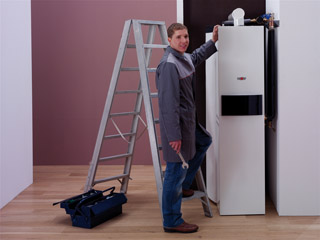 Die Gas-Solarzentrale passt wegen ihrer handlichen Ausmaße praktisch in jede kleine Nische. Sie kann auch unmittelbar an einer Wand aufgestellt werden, weil die Anschlüsse für Heizung und Solarkreis seitwärts, wahlweise links oder rechts montierbar sind und nur einen geringen Abstand erfordern. Weitere Anschlüsse für Warmwasser, Kaltwasser und Zirkulation werden nach oben geführt, alle Bedien- und Service-Elemente, z. B. für die Wartung, sind von vorne zugänglich. Stellflächenprobleme können so selbst in schwierigen Kellergrundrissen vermieden werden und bei Modernisierungen bleibt der bauliche Aufwand minimal.