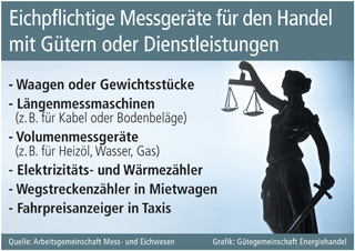 Damit solche Preisverzerrungen durch falsches Messen weder beim Käufer noch beim Verkäufer zu Nachteilen führen, hat in Deutschland jedes Bundesland eine Eichbehörde. Diese Institutionen sind unter anderem dafür zuständig, die Genauigkeit der Messeinrichtungen zu prüfen und durch einen Stempel zu bestätigen. Wenn die Gültigkeitsdauer dieses Stempels abgelaufen ist, dürfen die entsprechenden Geräte z. B. im Einzelhandel, in der Gastronomie oder an Tankstellen nicht mehr eingesetzt werden. Mit eichpflichtigen Messgeräten haben Verbraucher in den verschiedensten Situationen zu tun, häufiger wahrscheinlich als den meisten bewusst ist. Sobald der Preis einer Handelsware von deren Länge, Gewicht, Volumen oder Energiegehalt abhängig ist, kommt das Eichgesetz zum Einsatz. Zudem gilt das Verbraucherrecht auf Genauigkeit beim Messen und Zählen nicht nur für Waren, sondern ebenso für Dienstleistungen wie eine Taxifahrt. Und wenn die Polizei eine Geschwindigkeitsüberschreitung eines Fahrzeugs oder den erhöhten Alkoholwert des Fahrers misst, dann müssen die dafür verwendeten Geräte ebenfalls geeicht sein.