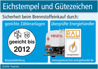 Der Haken für Heizungsbesitzer: Den Eichstempel an der Zähleranlage des Tankwagens können Verbraucher erst dann kontrollieren, wenn das Fahrzeug bereits vor dem Haus steht. Sollte man es bei abgelaufener Eichgültigkeit dann wieder zurückschicken? Klare Antwort von Verbraucherschützern: Ja, das sollte man, aber zu dieser unangenehmen Situation muss es erst gar nicht kommen. Es gibt nämlich noch ein weiteres Zeichen, das den Verbraucherschutz für Heizungsbesitzer komfortabel ergänzt: Das RAL-Gütezeichen Energiehandel bescheinigt dem jeweiligen Brennstoff-Lieferanten, dass über die gesetzlichen Vorgaben hinaus strenge Anforderungen in Sachen Produktgüte, Beratungskompetenz, Sicherheitsstandards, Preistransparenz und Zuverlässigkeit der Zähler-Anlagen erfüllt werden. Der Vergabe dieses Prädikats gehen wiederkehrende, unangemeldete Überprüfungen durch neutrale Sachverständige voraus. Dabei ist die Einhaltung aller Eichvorschriften ausdrücklich ein Bestandteil des umfangreichen Prüf-Programms, dessen Richtlinien das Deutsche Institut für Gütesicherung und Kennzeichnung e. V. vorgibt. Ob ein Brennstoffhändler diese Aus-zeichnung führen darf, das klärt bereits vor der Bestellung ein Blick auf dessen Internet-Seite. Und unter www.guetezeichen-energiehandel.de lassen sich für jede Region Deutschlands die Lieferanten mit RAL-Güte-zeichen abrufen.