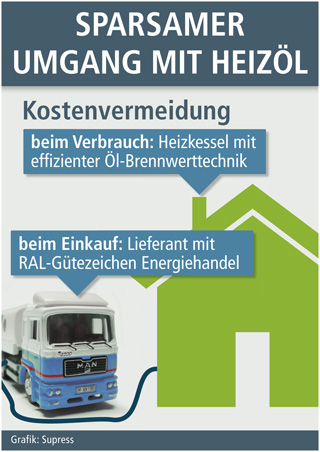 Eine weitere, weniger bekannte Sparmaßnahme kommt bereits beim Kauf des Heizöls zum Einsatz. Wer das RAL-Gütezeichen Energiehandel zum Auswahlkriterium bei der Händlersuche macht, der schützt sich vor mangelnder Produktqualität, unzulänglichen Liefermengen oder fehlerhafter Abrechnung. Mit diesem Qualitätsprädikat werden nämlich nur Brennstoffhändler ausgezeichnet, die sich dauerhaft der Kontrolle durch unabhängige Sachverständige unterziehen. Bei unangemeldeten Überprüfungen werden beispielsweise die Zählereinrichtungen und die Kontrollschaugläser am Tankwagen unter die Lupe genommen, ebenso wie der Hauptstempel der Eichbehörde und die Angaben auf den Lieferscheinausdrucken. Eine unseriöse Rechnungsstellung oder technische Mängel bei der Mengenmessung können auf diese Weise nicht unentdeckt bleiben. Zur Kostenkontrolle trägt auch bei, dass sich die Händler mit RAL-Gütezeichen grundsätzlich zu einer verbrauchergerechten Preistransparenz verpflichten müssen. Und im Gegensatz zu einer Heizungsmodernisierung ist es für Heizölkunden mit keinerlei Kosten verbunden, den Brennstoffeinkauf auf diese Weise abzusichern.