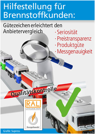 Hilfestellung erhalten Kunden von einer neutralen Qualitäts-Kennzeichnung: Wer z. B. Heizöl, Holzpellets, Flüssiggas oder Kohle für die häusliche Wärmeerzeugung nutzt, der sollte bei der Anbietersuche auf das RAL-Gütezeichen Energiehandel achten. Es signalisiert einen Brennstofflieferanten, dessen Seriosität in einem strengen Prüfverfahren kontinuierlich überwacht wird. Unabhängige Gutachter nehmen dabei ganz besonders die Bereiche unter die Lupe, die für Kunden schwer einzuschätzen sind bzw. ganz im Verborgenen bleiben: die Technik von Lagern und Lieferfahrzeugen, die Mitarbeiter-Qualifikation, die Preistransparenz, das Sicherheitsniveau sowie beispielsweise die Funktionsweise der Zählereinrichtungen für die Tankbefüllung. Dank dieser aufwändigen Vorleistungen durch Profis kann der Brennstoffkunde seinen Anbietervergleich direkt auf der Internetseite www.guetezeichen-energiehandel.de starten: Hier sind ausschließlich Lieferanten verzeichnet, die alle Kontrollen zum RAL-Gütezeichen erfolgreich absolviert haben.