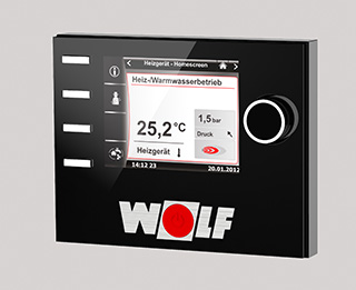 Bei dieser Systemlösung kann die zusätzliche Steuerung einer Solaranlage oder eines Wohnungslüftungsgerätes ebenfalls der Regelung als dem zentralen „Gehirn“ der gesamten Gebäudetechnik anvertraut werden. Die Leistung des Heizkessels variiert dann in Abhängigkeit von den Wärmeerträgen der Sonnenkollektoren bzw. der Wärmerückgewinnung beim kontrollierten Luftaustausch. Für die Regelungseinstellungen aller beteiligten Geräte ist nur noch ein einziges Bedienmodul erforderlich, das am Heizkessel, bei manchen Anlagen aber auch in einen Wandsockel im Wohnbereich eingesetzt werden kann. Dort wird den Eigentümern bei Bedarf sogar all das detailliert angezeigt, was sich früher unbemerkt im Inneren der Geräte abgespielt hat. So ist z. B. das Bedienmodul bei der neuen Generation von Brennwert-Heizkesseln des Systemanbieters Wolf Heiz- und Klimatechnik (Mainburg) mit einem TFT-Farbdisplay ausgestattet, das mit Klartext- und Grafikanzeigen über alle Parameter der Raumwärme-Erzeugung, der Warmwasserbereitung und je nach Konfiguration auch über Lüftung und Solar-Erträge informiert (www.wolf-heiztechnik.de). Vier Schnellwahltasten, ein Drehregler mit Tastenfunktion sowie eine übersichtliche Menüführung erleichtern dem Fachhandwerker die Inbetriebnahme und dem Nutzer den Zugriff auf alle Wärme-Optionen.