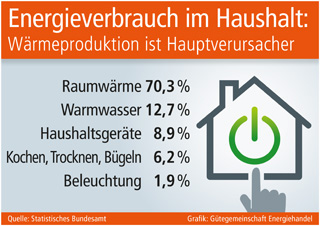 sup.- Spar-Tipps rund um den Energieverbrauch im Haushalt gehören zu den wichtigsten Themen bei Wohnratgebern. Das ist verständlich, denn die steigenden Ausgaben für Energie belasten sowohl Eigenheimbesitzer als auch Mieter. Meist geht es in den Verbraucherinformationen um das Energielabel bei Haushaltsgeräten, um abschaltbare Steckerleisten, den Austausch von Glühbirnen oder beispielsweise um die Warnung vor dem Standby-Betrieb von Elektrogeräten. Was jedoch beachtet werden sollte: Nur für 1,9 Prozent des Energieverbrauchs in deutschen Haushalten ist die Beleuchtung verantwortlich. Der Strom fürs Kochen, Trocknen und Bügeln beansprucht laut dem Statistischen Bundesamt auch nur einen Anteil von 6,2 Prozent. Und alle anderen elektrisch betriebenen Geräte inklusive PC und Kommunikationsanlagen benötigen gemeinsam ebenfalls nicht mehr als 8,9 Prozent der Gesamtenergie. Fazit: Es ist zwar begrüßenswert, dass nach einer aktuellen Umfrage fast 90 Prozent der Deutschen Maßnahmen zur Einschränkung des Stromverbrauchs ergriffen haben. Aber der entscheidende Schritt zur Kostensenkung im Haushalt ist das noch nicht. Die wahren Energiefresser hängen nämlich nicht an der Steckdose, sondern sind in der Wärmeproduktion fürs Heizen (70,3 Prozent) und für die Warmwasserbereitung (12,7 Prozent) zu finden.