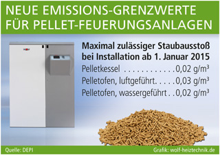 Nun tritt ab dem 1. Januar 2015 die zweite Stufe der novellierten Verordnung in Kraft, in der die Grenzwerte weiter abgesenkt worden sind: Maximal 0,04 Gramm Staub pro Kubikmeter Abluft dürfen neu installierte Einzelraumfeuerungsanlagen dann noch emittieren. Für luftgeführte Pelletöfen liegt das Limit sogar bei nur 0,03 g, für wassergeführte Geräte bei 0,02 g. Ebenfalls lediglich 0,02 g/m3 beträgt der zulässige Höchstwert bei den immer beliebter werdenden Pelletkesseln, die ein ganzes Haus zentral beheizen können. Diese Werte sind nach Angaben des Deutschen Pellet-instituts (DEPI) so niedrig, dass erst spezielle Messgeräte entwickelt werden mussten, um sie über-haupt erfassen zu können. Für bereits bestehende Anlagen gelten je nach Installationsdatum unter-schiedliche Übergangsfristen.