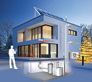 sup.- Nach Sanierungen sowie in Neubauten umfasst die Gebäudetechnik zum Heizen und Lüften heute fast immer deutlich mehr Einzelkomponenten als noch vor einigen Jahren. Den Heizkessel ergänzen beispielsweise eine Solaranlage, eine Wärmepumpe oder andere Geräte für Wärmelösungen mit erneuerbaren Energien. Hinzu kommen dann ein multifunktionaler Speicher zur Verwaltung der verschiedenen Wärmeerträge und oft auch ein System zur kontrollierten Wohnungslüftung. Diese Anlagenerweiterung ist aber nur der eine Trend. Ganz im Gegensatz dazu steht die allgemeine Tendenz zur Minimierung und Vereinfachung der Regelungseinheiten. Das erklärte Ziel von Herstellern, Wartungs-Fachbetrieben und vor allem von Nutzern ist eine zentrale, vernetzte und möglichst auch mobile Steuerung der gesamten Heizungs- und Lüftungsanlage des Hauses.