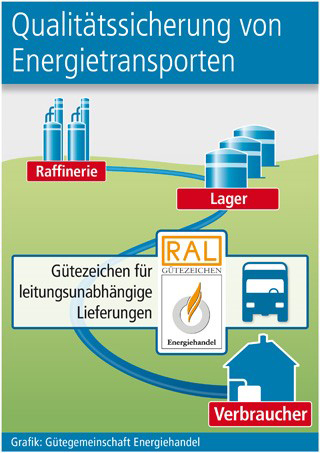 Diese letzte und entscheidende Etappe des langen Versorgungs-weges kann vom Nutzer einer leitungsunabhängigen Energie sogar zusätzlich abgesichert werden. Denn üblicherweise ist es eine reine Vertrauensfrage, ob sich in dem Tankwagen tatsächlich die vereinbarte Brennstoffqualität befindet oder ob die Liefermenge mit der Abrechnung übereinstimmt. Das RAL-Gütezeichen Energiehandel bestätigt, dass ein damit ausgezeichneter Anbieter hinsichtlich seiner Zuverlässigkeit, der Qualitätsnormen seiner Waren sowie aller liefertechnischen und eichrechtlichen Bestimmungen streng überprüft wurde (www.guetezeichen-energiehandel.de). Die unangemeldeten Kontrollen, die auch den Schulungsstand des Personals umfassen, werden fortlaufend wiederholt und dienen so als standortunabhängiger Verbraucher-Service zur Qualitätssicherung der Energieversorgung.
