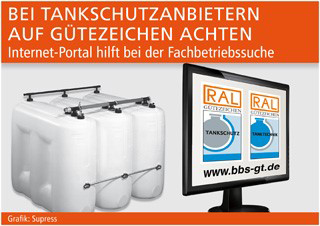 Der Bundesverband Behälterschutz e. V. rät deshalb dringend davon ab, für die Vergabe solcher Arbeiten bei fragwürdigen Schnäppchen-Empfehlungen oder bei dubiosen Haustürangeboten zuzugreifen. Wer auf Nummer sicher gehen will, dass ein Fachbetrieb die erforderlichen Qualifikationen und die Zulassung nach Wasserrecht besitzt, der sollte auf das RAL-Gütezeichen Tankschutz und Tanktechnik achten. Ein stets aktualisiertes Verzeichnis aller deutschen Betriebe mit diesem Qualitätsprädikat wird auf der Website www.bbs-gt.de geführt. Dieses Portal für private und gewerbliche Tankbetreiber bietet die Option, sowohl den Postleitzahlbereich als auch die Art der benötigten Dienstleistung als Filter bei der Anbietersuche einzusetzen. Auf diese Weise findet jeder Eigentümer einen passgenau geeigneten Betrieb für alle Maßnahmen rund um seinen Heizöltank. Alle dort aufgelisteten Firmen unterliegen besonders strengen Kontrollen, die von neutralen Sachverständigen durchgeführt werden. Und wer die Neuanschaffung eines Tanks plant, kann sich unter der gleichen Internetadresse mit Hilfe einer umfangreichen Hersteller-Datenbank eine Übersicht über Tanksysteme und Zubehörkomponenten verschaffen.