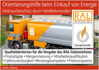 sup.- Einkaufen heißt auswählen: Verbraucher müssen meistens unter einer Vielzahl von Angeboten das passende Produkt oder die geeignete Dienstleistung mit einem akzeptablen Preis-Leistungs-Verhältnis aufspüren. Das ist nicht immer einfach, besonders wenn ein Kunde wie z. B. bei den Brennstofflieferungen fürs Heizen weder die genaue Menge noch die Beschaffenheit der Ware mit eigenen Mitteln überprüfen kann. Aus diesem Grund gibt es wie in vielen anderen Warenbereichen auch beim Einkauf von Energie wertvolle Orientierungshilfen durch eine Auszeichnung nach den Qualitätskriterien des Deutschen Instituts für Gütesicherung und Kennzeichnung (Sankt Augustin): Diese seit Jahrzehnten anerkannten RAL-Gütezeichen markieren in den unterschiedlichsten Bran-chen streng kontrollierte Anbieter sowie Angebote und bilden auf diese Weise für die Kunden ein aufschlussreiches, kostenfrei zugängliches Verbraucherschutzinstrument.