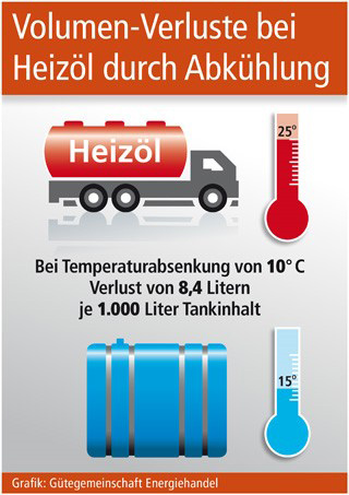 sup.- Ist es möglich, dass eine gekaufte Ware erst nach Lieferung und Bezahlung deutlich an Menge und damit auch an Wert verliert? Das kann passieren, wenn zum Beispiel Heizöl in einem Tankwagen zum Kunden transportiert wird. Das Öl dehnt sich nämlich bei Hitze aus und zieht sich bei Kälte wieder zusammen. Auch während der Anlieferung passt sich Heizöl der Außentemperatur an, so dass es an sommerlichen Tagen entsprechend erwärmt und in größerer Ausdehnung in den Tank des Verbrauchers gefüllt wird. In der kühleren Umgebung des Tankraums beginnt dann der Schrumpfungsprozess: Bei einer Temperaturdifferenz von zehn Grad Celsius sind es pro 1.000 Liter Tankinhalt genau 8,4 Liter, die durch die Abkühlung verloren gehen. Sofern die Rechnung auf der bei der Tankbefüllung erfassten Menge beruht, gibt es für diesen Anteil der Summe also keine Gegenleistung. Heizölhändler müssen deshalb die gemessene Liter-Anzahl grundsätzlich auf den Wert umrechnen, der sich bei exakt 15 Grad ergeben hätte.