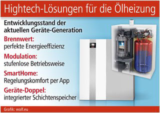 sup.- Wenn Hausbesitzer sich vor einer Modernisierungsmaßnahme über den Stand der Heiztechnik informieren möchten, geht in der Flut der beworbenen Neuerungen manchmal ein wichtiger Fakt unter: Auch klassische Wärmekonzepte wie die Ölheizung werden technologisch auf höchstem Niveau weiterentwickelt. Zeitgemäße Öl-Brennwertgeräte müssen sich in Sachen Wärmekomfort, Energieeffizienz und Umweltverträglichkeit deshalb keinesfalls hinter anderen Heiz-Technologien verstecken. Das Brennwertprinzip, mit dem die Energieverwertung bis an die Grenzen des technisch Erreichbaren ausgereizt wird, hat die heutigen Ölheizkessel längst in die erste Liga der Effizienz-Lösungen aufsteigen lassen. Und auch hier gibt es nach wie vor wegweisende Innovationen, die die Wohnnebenkosten für Wärme zusätzlich senken. So hat der Systemspezialist Wolf Heiz- und Klimatechnik (Mainburg) seinen aktuellen Ölbrennwertkesseln das Modulieren beigebracht. Damit ist gemeint, dass sie ihre Leistung im Gegensatz zu früheren Geräte-Generationen jederzeit stufenlos dem Wärmebedarf anpassen können. Durch diese Fähigkeit wird nicht nur der Verbrauch gesenkt, sondern auch der Verschleiß, denn bei wechselhafter Witterung kommt es nicht mehr zu einem ständigen Abschalten und Neustarten der Heizung (www.wolf.eu). Weil der flexible Leistungsabruf den Standby-Verbrauch minimiert und überflüssige Einsätze des Pumpenmotors verhindert, konnte zusätzlich der Bedarf an elektrischer Hilfsenergie reduziert werden.