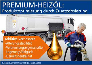 Erreicht wird diese Aufwertung der Produktgüte durch so genannte Additive, also Zusatzstoffe, die dem Heizöl nicht in der Raffinerie, sondern erst während der Tankbefüllung beim Kunden in der produktspezifisch vorgegebenen Dosierung beigemischt werden. Damit wird klar, dass nicht nur an das Öl selbst, sondern vor allem an die Kompetenz des Brennstoffhändlers und an die Zuverlässigkeit des gesamten Liefervorgangs höchste Qualitätsansprüche gestellt werden müssen. Um sicherzugehen, dass die Dosier-Vorrichtung für Additive am Tankfahrzeug ebenso fehlerfrei funktioniert wie der Zähler zur Erfassung der Liefermenge, sollten Heizölverbraucher bei der Auswahl ihres Anbieters auf das RAL-Gütezeichen Energiehandel achten. Dann ist gewährleistet, dass Fahrzeuge, Messgeräte sowie der Schulungsstand des Lieferpersonals einer kontinuierlichen Überwachung durch externe Gutachter unterliegen (www.guetezeichen-energiehandel.de). Das Gütezeichen sichert damit nicht nur die Lebensdauer von Öl, Tank- und Heiztechnik, sondern es schützt auch vor fehlerhaften Abrechnungen.