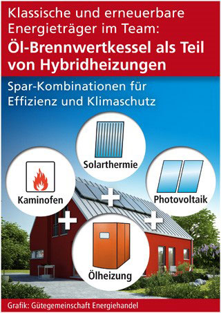 sup.- Wer auf Bewährtes setzt, muss kein altmodischer Traditionalist sein. Das gilt auch für Hausbesitzer, die ihre Wärmeversorgung nach wie vor dem klassischen Energieträger Heizöl anvertrauen. Repräsentative Umfragen zeigen sogar, dass Heizölverbraucher den aktuellen technologischen Entwicklungen äußerst aufgeschlossen gegenüberstehen. Nahezu jede Dritte aller neu installierten Ölheizungen wird nach Angaben des Instituts für Wärme und Oeltechnik (IWO) mit einer Solarthermieanlage kombiniert. Insgesamt sind es bereits rund 930.000 der ca. 2,24 Mio. bestehenden Solaranlagen in Deutschland, deren Wärmeerträge durch eine Ölheizung abgesichert und ergänzt werden. Auch der erzeugte Strom aus einer Photovoltaikanlage dient zunehmend als erneuerbare Energiequelle neben dem fossilen Brennstoff Öl. Ebenfalls stark im Trend: Die Kopplung eines verbrauchsarmen Ölbrennwertkessels mit zeitgemäßer Biomasse-Nutzung, beispielsweise durch einen Hightech-Kaminofen für Holzfeuerung.