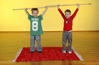 Bildzeile: Mit einfachen Mitteln wie einem Besenstiel oder einem Stock können Kinder im Alltag zu körperlicher Aktivität motiviert werden.