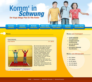 sup.- „Schwung, Bewegung, Dynamik und Motivation sind eine wichtige Grundlage für ein gesundes und positives Leben“, sagt Prof. Stephan Martin, Kuratoriumsvorsitzender der Stiftung „Motivation zur Lebensstil-Änderung“ und Herausgeber der neuen Website www.komm-in-schwung.de. Als Diabetologe wird Prof. Martin zunehmend mit übergewichtigen jüngeren Erwachsenen konfrontiert, die bereits unter erhöhten Blutzuckerwerten leiden. „Der beste Weg, Übergewicht schon bei Kindern zu vermeiden, ist eindeutig ein gesunder Lebensstil mit viel körperlicher Aktivität“, so Prof. Martin. Deshalb hat er sich zusammen mit anderen kompetenten Wissenschaftlern für das neue Internetportal für fitte Kinder engagiert. Es gibt Eltern wie Erziehern u. a. wertvolle Orientierungshilfen, wie sie regelmäßige Bewegungseinheiten (Movies) in den Alltag von Kindern und Jugendlichen bringen können. Die informative Website wird auch von der Plattform Ernährung und Bewegung (peb) empfohlen.