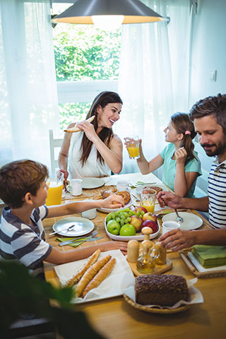 Vielfach wird auch einfach unterschätzt, welchen hohen Stellenwert gemeinsame Mahlzeiten für das körperliche wie seelische Wohlbefinden von Kindern haben können. So zeigen wissenschaftliche Studien seit Jahren z. B. einen eindeutigen Zusammenhang zwischen der Häufigkeit von Mahlzeiten im Kreise der Familie und dem Risiko, dass Kinder Gewichtsprobleme entwickeln. Die Wahrscheinlichkeit, zur Gruppe der Übergewichtigen zu gehören, sinkt mit der Anzahl der gemeinsamen Mahlzeiten. Die beste Chance auf Normalgewicht haben Kids, die sowohl das Frühstück wie auch das Mittag- oder Abendessen zuhause mit ihrer Familie wahrnehmen.