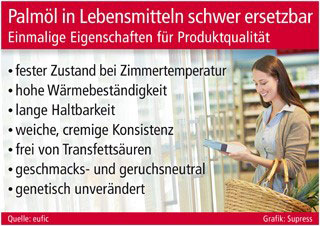 sup.- Weder unter qualitativen noch unter ökologischen Gesichtspunkten ist es die bessere Wahl, wenn Konsumenten sich gezielt für Lebensmittel mit der vermeintlichen Auszeichnung „ohne Palmöl“ entscheiden. Immer mehr Verbraucher glauben, mit solchen Prioritäten beim Einkauf einen Beitrag zum Umweltschutz zu leisten. Dass dies tatsächlich der Fall ist, bezweifeln aber selbst anerkannte Nichtregierungsorganisationen (NGOs) wie Greenpeace oder der WWF (World Wide Fund For Nature).