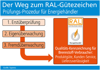 sup.- Energiekauf ist Vertrauenssache. Das gilt auch für Firmen und Gewerbebetriebe, die z. B. regelmäßig Brennstoff zur Wärmeerzeugung in Produktion oder Verwaltung benötigen. In der Praxis sind weder bei einer leitungsgebundenen Versorgung noch bei der Anlieferung per Tankwagen die Abgabemengen ohne weiteres zu erkennen, geschweige denn detailliert nachzuprüfen. Zumindest beim Bezug von Brennstoffen ohne Leitungsnetzanbindung gibt aber das RAL-Gütezeichen Energiehandel wertvolle Orientierungshilfe. Das Qualitätsprädikat, das nach den Güte- und Prüfbestimmungen des Deutschen Instituts für Gütesicherung und Kennzeichnung e. V. (Sankt Augustin) verliehen wird, dürfen Brennstoffhändler erst nach einem aufwändigen Anerkennungsverfahren führen (www.guetezeichen-energiehandel.de). Abnehmer haben so die Chance, aus dem Lieferanten-Angebot diejenigen auszuwählen, deren Seriosität und Zuverlässigkeit durch die Kontrollen bestätigt wurden. Ob Fahrzeugtechnik oder Mess-Einrichtungen, ob Sicherheitsniveau oder die Einhaltung eichrechtlicher Vorschriften – im gesamten Betriebsablauf werden keinerlei Einschränkungen bei den Qualitäts-Standards akzeptiert.