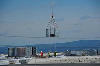 Darüber hinaus wird von Klimaanlagen heute erwartet, dass sie über eine optimale Schalldämmung verfügen, dass die Lifecycle-Kosten ebenso berechenbar wie vertretbar sind und dass die Geräte gut recycelt werden können. Vor allem sollen sie so effizient wie möglich arbeiten, um die energetische Bilanz eines Unternehmens nicht zu belasten. Wachsende Bedeutung kommt deshalb energieeffizienten Konzepten wie der Wärmerückgewinnung aus der Abluft zu. Solche Spezialfunktionen verstärken natürlich noch die Notwendigkeit einer maßgeschneiderten, gebäudebezogenen Konfiguration. So hat beispielsweise einer der europäischen Marktführer im Segment der Klimaanlagen, der Systemanbieter Wolf Heiz- und Klimatechnik (Mainburg), das Prinzip Flexibilität zum Leitmotiv bei der Konzeption seiner Geräte gemacht. 26 verschiedene Baugrößen, die auch untereinander kombiniert werden können, erlauben Klimatechnik nach Maß für jedes Bauprojekt. Die zerlegbaren Geräte mit steckbaren Rahmenkonstruktionen gewährleisten, dass es bei Transport, Einbringung, Montage und Wartung nicht zu unüberwindbaren Hürden kommt – selbst wenn ein Klima-Großgerät in Einzelteilen per Hubschrauber auf das Dach des vorgesehenen Standorts geflogen werden soll. Ebenso flexibel sind bei diesen Systemen auch die Anwendungsschwerpunkte: Von der Kühlung in Rechenzentren und der Entfeuchtung von Hallenbädern über das Hygieneklima in Krankenhäusern bis zum Frischluftvolumen für große Sportarenen – verschiedene Bauausführungen und Regelungskomponenten erlauben jeweils einen perfekt abgestimmten Einsatz. Die Internetseite www.wolf-heiztechnik.de vermittelt einen Überblick über die Variationsmöglichkeiten dieser Anlagen.