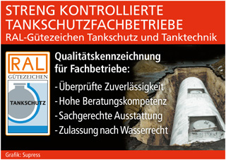 Es ist aber weder praktikabel noch erforderlich, dass der Auftraggeber zur eigenen Entlastung eine umfangreiche Überprüfung aller Zulassungen und Zuständigkeiten des jeweiligen Anbieters vornimmt. Der einfachere Weg führt über das RAL-Gütezeichen Tankschutz und Tanktechnik: Bei Tankschutzfachbetrieben mit diesem Prädikat ist das entsprechende Prüfverfahren bereits durch neutrale Gutachter durchgeführt worden. Nur wenn die strengen Kontrollen die Seriosität und Zuverlässigkeit des Betriebs kontinuierlich unter Beweis stellen, darf das RAL-Gütezeichen als Qualitätskennzeichnung genutzt werden. Die Beratungskompetenz dieser Fachbetriebe gewährleistet, dass eine Firma mit Tankanlagen keine Prüftermine oder andere Betreiberpflichten versäumt. Unter www.bbs-gt.de gibt es weitere Informationen zu den Vergabekriterien für das Gütezeichen sowie eine Auflistung aller ausgezeichneten Fachbetriebe nach Postleitzahlbereichen.