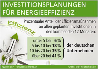 sup.- Ungeachtet aller Finanzkrisen und Konjunkturschwankungen hält sich auf der Agenda vieler Unternehmen seit Jahren ein Standardthema: Die Steigerung der Energieeffizienz bleibt zentrale Aufgabe, solange ungenutzte Optimierungs-Möglichkeiten beim Strom- und Wärmebedarf die Betriebskosten belasten. Um im Wettbewerb bestehen zu können, kommt heute praktisch kein Unternehmen mehr ohne professionelles Energiemanagement aus. Dass die Verantwortlichen in den Geschäftsleitungen unabhängig von Wirtschaftszweig und Unternehmensgröße den Handlungsbedarf erkannt haben, zeigt der aktuelle „Energieeffizienz-Index der deutschen Industrie“ (EEI). Diese halbjährlich durchgeführte Erhebung des Instituts für Energieeffizienz in der Produktion (EEP), einer Einrichtung der Universität Stuttgart, liefert repräsentative Daten zu den betrieblichen Initiativen und erleichtert anstehende Investitionsentscheidungen. Der Bedarf an solchen Hilfestellungen ist groß, denn nach den EEI-Ergebnissen der Wintererhebung 2015/2016 gab es unter den befragten Unternehmen nicht eines, das in den kommenden zwölf Monaten gänzlich auf solche Investitionen verzichten möchte. 41 Prozent planen für die energetischen Verbesserungen sogar einen Anteil von mehr als 20 Prozent der betrieblichen Gesamtinvestitionen ein. Und bei rund einem Drittel wird der Investitionsanteil immerhin zwischen zehn und 20 Prozent liegen.