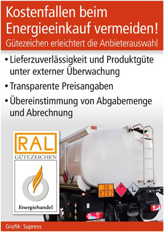 Solche Kostenfallen lassen sich nur durch höchstmögliche Transparenz und Qualitätssicherung bei den Energiehändlern vermeiden. Ein wichtiges Kriterium für die Anbieterauswahl sollte deshalb stets das RAL-Gütezeichen Energiehandel sein. Dieses seit vielen Jahren anerkannte Prädikat ist eine Kennzeichnung für Lieferzuverlässigkeit, die nur streng überwachten Händlern verliehen wird (www.guetezeichen-energiehandel.de). Waren, Lager, Fuhrpark und Betriebsabläufe müssen den strengen Vorgaben der RAL-Richtlinien entsprechen, deren Einhaltung regelmäßig von externen Sachverständigen kontrolliert wird. Die Befüll- und Messeinrichtungen der Lieferfahrzeuge stehen bei den unangemeldeten Prüfterminen besonders im Fokus, damit die Käufer sich auf die Korrektheit der Lieferscheinangaben verlassen können. Um die notwendige Preistransparenz zu gewährleisten, müssen die Händler jederzeit aktuelle Preislisten mit echten Endpreisen für alle angebotenen Brennstoffe bereitstellen.