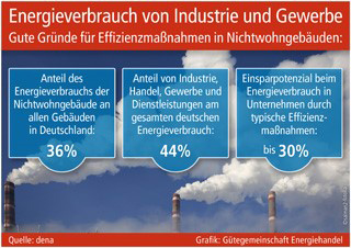 Immerhin fallen laut dena rund 36 Prozent des Energieverbrauchs aller Gebäude in Deutschland in den Nichtwohngebäuden an. Und der Anteil von Industrie, Handel, Gewerbe und Dienstleistungen am deutschen Gesamtenergieverbrauch liegt bei 44 Prozent. „Diese Zahl verdeutlicht“, so die dena, „dass die Energiewendeziele der Bundesregierung ohne Beiträge der Wirtschaft nicht zu erreichen sind.“ Handlungsbedarf besteht besonders bei der Aufklärung kleiner und mittelständischer Betriebe, die bestehende Förderangebote bisher viel zu selten in Anspruch nehmen. Hier liegt eine große Chance, mit staatlicher Unterstützung auch die Einsparpotenziale im Rahmen der Wärmeversorgung zu erschließen. Während sich große Unternehmen und Filialisten in vielen Fällen auf eine Minderung des Stromverbrauchs konzentrieren, profitieren z. B. Einzelhändler mit eigenem Betriebsgebäude auch langfristig von Investitionen in eine Heizungssanierung oder die Gebäudedämmung. Als Besitzer der Immobilie können sie auch unabhängig über die Modalitäten des Energiebezugs entscheiden, was insbesondere bei einer Nutzung leitungsunabhängiger Brennstoffe wie Heizöl zusätzlichen Schutz vor Kostenfallen ermöglicht: Wird das RAL-Gütezeichen Energiehandel als Auswahlkriterium für den Lieferanten genutzt, dann werden die Betriebskosten zumindest nicht durch Fehlabrechnungen oder unzutreffende Mengenmessungen belastet. Das Gütezeichen belegt eine kontinuierliche externe Überwachung der Händler, die sowohl die Produktgüte als auch die Abgabetechnik und die Zähleranlagen der Lieferfahrzeuge umfasst (www.guetezeichen-energiehandel.de). Die von den Prüfbestimmungen verlangte Preistransparenz der Anbieter beseitigt darüber hinaus weitere kostenträchtige Informationsdefizite.