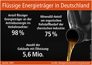 Ein weiterer Vorteil: Die bundesweit bestehenden und bewährten Lager- und Vertriebsstrukturen für eine dezentrale Versorgung mit flüssigen Energieträgern wie Heizöl, Benzin oder Diesel sind problemlos auch für die neuen E-Fuels nutzbar. Weder Großtanklager oder Pipelines noch Schiffe, Lieferfahrzeuge, Tankstellen oder Verbrauchertanks müssen neu errichtet oder aufwändig umgerüstet werden. Auch die Motoren oder Heizungen der Nutzer können bei diesem Energiekonzept in Betrieb bleiben. Die Dimensionen solch einer „Bestandsgarantie“ werden bei einem Blick auf die gegenwärtige Nutzung flüssiger Energieträger in Deutschland deutlich: Im Verkehrssektor stellen sie 98 Prozent der gesamten Antriebsenergie, in rund 5,6 Mio. Gebäuden kommt darüber hinaus Heizöl zum Einsatz. Außerdem deckt die chemische Industrie 75 Prozent ihres organischen Rohstoffbedarfs mit Mineralöl. Es wäre sowohl klimapolitisch als auch volkswirtschaftlich verantwortungslos, die dafür seit Jahrzehnten gewachsenen Infrastrukturen beim angestrebten Umstieg auf eine möglichst treibhausgasneutrale Energieversorgung zu vernachlässigen.