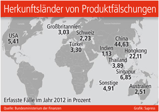Bedenkliche Inhaltstoffe bzw. unzulässige Fertigungsmethoden sind nicht nur hinsichtlich der Funktionalität und der Haltbarkeit ein Problem, sondern vielfach sogar gesundheitsgefährdend. Denn bei den Kopien und Plagiaten geht es längst nicht mehr nur um Luxusuhren oder Designermode. Auch mit gefälschten Arzneimitteln wird inzwischen weltweit viel schwarzes Geld verdient. Nach Angaben der Zollexperten im Bundesfinanzministerium stammen rund zwei Drittel aller vom Zoll aufgegriffenen Produktfälschungen aus China und Hongkong. Gerade im nicht-europäischen Ausland nutzen die Fälscher heute immer häufiger moderne Internet-Plattformen, um ihre Produkte unmittelbar an die Endverbraucher zu vertreiben – eine zusätzliche Herausforderung für die staatlichen Fahnder.