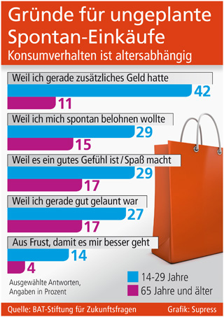 Das Alter spielt bei der Zahlungsbereitschaft übrigens keine nennenswerte Rolle, wohl aber bei der Frage nach den Spar-Optionen. Wenn das Geld knapp wird, würden 20 Prozent der 14 bis 29Jährigen in den Bereichen Wohnen, Haus und Garten sparen, aber nur neun Prozent der Senioren ab 65. Dagegen ist die Einspar-Bereitschaft der Jüngeren bei Medien wie Computer, Video und Zeitschriften mit 31 Prozent geringer als die der älteren Bundesbürger (44 Prozent). Besonders deutlich sind die altersabhängigen Unterschiede bei den Gründen für ungeplante Spontan-Einkäufe. „Weil ich gerade zusätzliches Geld hatte“, bekennen 42 Prozent der jüngeren, aber nur elf Prozent der älteren Konsumenten. Auch gute Laune bzw. Frust sind bei den Käufern unter 30 viel häufiger ein Kaufanreiz. „Was zählt, ist die Befriedigung individueller Bedürfnisse“, so ein Fazit der Konsumstudie. Diese Entscheidungsfreiheit beim Einkaufen, die sich an den ganz persönlichen Interessen und Möglichkeiten orientiert, setzt natürlich ein entsprechend breit gefächertes Angebot über alle Preisbereiche und Qualitätsstufen voraus. Diese Vielfalt ist gefährdet, seitdem ausgerechnet das Bundeskartellamt für eine Verknappung der Angebotspalette sorgt. Unternehmen, die auch für das obere Preissegment produzieren, werden immer wieder verbotener Absprachen verdächtigt und unter Androhung drastischer Bußgelder zur Orientierung am untersten Discount-Niveau genötigt. „Es ist das Bestreben der Behörde, aus Deutschland ein ‚Discountry‘ zu machen“, schreibt der Wirtschaftspublizist Detlef Brendel in dem Fachbuch „Wirtschaft im Würgegriff / Wie das Kartellamt Unternehmen blockiert“ (Campus Verlag, ISBN 9783593501505). „Dieser Weg birgt erhebliche Risiken für die Unternehmen, für den zumeist funktionierenden Wettbewerb, für die Arbeitsplätze und letztlich für die gesamte Gesellschaft, weil er Faktoren wie hochpreisige Markenpolitik, qualitativen Anspruch oder Serviceorientierung infrage stellt, die maßgeblich zur Stärke der deutschen Wirtschaft geführt haben.“