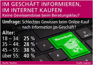 sup.- Ins örtliche Fachgeschäft gehen oder lieber online bestellen? Sowohl als auch, lautet heute oft die Antwort auf diese Frage. Allerdings nehmen viele Verbraucher dabei eine Schwerpunktsetzung vor, die dem Fachhandel zunehmend zu schaffen macht: Sie testen und vergleichen die Produkte im stationären Geschäft, lassen sich dort ausführlich beraten – um ihre Auswahl anschließend preisgünstiger bei einem Online-Händler zu bestellen. Manche Kunden tun dies ganz ungeniert per Smartphone noch im Geschäft, während der gerade zu Rate gezogene Fachverkäufer auf seinen Waren sitzen bliebt. „Beratungsklau“ lautet der Terminus für dieses Verhalten, das bereits manche Fachgeschäfte in den Innenstädten zur Aufgabe gezwungen hat. Denn die Miete für Verkaufs- und Präsentationsfläche, für Lagerhaltung, Büros und Sozialräume muss dort ja erst einmal erwirtschaftet werden, ebenso wie die Personalkosten für ausgebildete Fachkräfte. Wenn jedoch ein Großteil des bisherigen Geschäftsvolumens vom Internethandel übernommen wird, sind solche Investitionen nicht mehr finanzierbar.