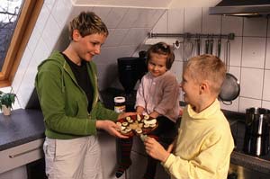 Bei der Auswahl der Speisen sollten die Vorlieben der Kinder berücksichtigt werden. Eltern sollten daran denken: Süßigkeiten schaden in kleinen Mengen einer ausgewogenen Ernährung keineswegs. Nach kräftezehrendem Toben ist das Bedürfnis nach zuckerhaltigen Nahrungsmitteln vielmehr ganz normal.