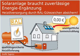 Dass diese Formalien bei der Nutzung der Sonnenstrahlung keine Rolle spielen, hat zudem noch einen oft unterschätzten Nebeneffekt: Da die Sonne nicht in Verkaufsabsicht strahlt, gibt es für den Solarenergie-Nutzer auch keinen Anlass zu Miss-trauen bezüglich abgerechneter Liefermengen oder zur Sorge vor möglicherweise fehlerhaften oder manipulierten Messgeräten. Dagegen sind beim Heizölbezug diese Bedenken mancher Kunden durchaus nachvollziehbar, weil die Medien regelmäßig über schwarze Schafe unter den Brennstoff-Lieferanten berichten. Es gibt jedoch ein anerkanntes Verbraucherschutzinstrument, um die sommerliche Solarenergie durch einen ebenso zuverlässigen wie unbedenklichen Energiebezug in der kalten Jahreszeit zu ergänzen: Wenn bei der Heizölbestellung auf einen Lieferanten mit dem RAL-Gütezeichen Energiehandel geachtet wird, bildet dieses Prädikat eine wirksames Bollwerk gegen ungerechtfertigte Rechnungsbeträge. Bei Anbietern mit dem Gütezeichen ist sichergestellt, dass sie selbst ein großes Interesse an zuverlässiger Produktgüte, geeichten Zähleranlagen sowie korrekten Abrechnungen haben. Sie werden nämlich immer wieder unangemeldet von externen Sachverständigen kontrolliert, wobei unter anderem die Befüll- und Messanlagen an den Lieferfahrzeugen sowie die Warenbeschaffenheit auf den Prüfstand kommen (www.guetezeichen-energiehandel.de).