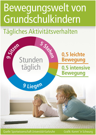 sup.- Wir leben in einer bewegungsarmen und technikreichen Welt. Selbst Kinder benötigen ihren Körper kaum noch zur Alltagsbewältigung. Laut einer Erhebung von Prof. Klaus Bös (Institut für Sport und Sportwissenschaft der Universität Karlsruhe), bei der Bewegungstagebücher von Grundschulkindern (6 bis 10 Jahre) ausgewertet wurden, kommt körperliche Aktivität bei der heutigen Generation eindeutig zu kurz. 23 Stunden des Tages verbringen Kinder liegend, sitzend oder stehend. Lediglich durchschnittlich eine Stunde bewegen sich die Kids, davon maximal 30 Minuten intensiv. Dieser zunehmende Bewegungsmangel ist Hauptursache dafür, dass immer mehr Kinder und Jugendliche übergewichtig sind. Während sich das Ernährungsverhalten in den letzten Jahren nur geringfügig verändert hat, ist die körperliche Aktivität massiv zurückgegangen.