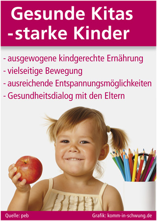 sup.- Einen gesunden Lebensstil können Kinder schon in Kindertageseinrichtungen (Kitas) lernen. Vorraussetzung hierfür ist, dass im Alltag der Kitas Bildungsziele mit einem gesunden Lebensstil verknüpft werden. Dazu gehören ausgewogene, kindgerechte Ernährung, vielseitige Bewegung, ausreichende Entspannungsmöglichkeiten und der Gesundheitsdialog mit den Eltern. Diese vier Säulen stehen im Mittelpunkt des Pilotprojektes „Gesunde Kitas – starke Kinder“, das von der Plattform Ernährung und Bewegung (peb) an 46 Kitas vor anderthalb Jahren mit Hilfe von peb-Coaches initiiert worden ist.