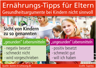 sup.- „Iss bitte das Gemüse, denn das ist gesund.“ Von Eltern, Großeltern und Erziehern wird häufig das Gesundheitsargument genutzt, um Kinder zum Verzehr bestimmter Nahrungsmittel zu motivieren. Dies ist ein weit verbreiteter Fehler der Ernährungserziehung, der weder pädagogisch noch unter ernährungswissenschaftlichen Aspekten sinnvoll ist – ganz im Gegenteil. „Das Gesundheits-argument ist gerade bei jüngeren Kindern äußerst problematisch. Kinder neigen dazu, die Bedeutung von gesund mit Lebensmitteln zu verbinden, die ihnen eben gerade nicht so gut schmecken. Die Bezeichnung ‚gesund’ wird somit negativ besetzt“, erläutert Dr. Thomas Ellrott, Leiter des Instituts für Ernährungspsychologie (Universitätsmedizin Göttingen) und Experte des Ratgeber-Portals www.komm-in-schwung.de. Umgekehrt wirken Lebensmittel, die als „ungesund“ bezeichnet wer-den, besonders verlockend und werden mit den Vorstellungen schmeckt gut, will ich haben, besetzt. Studien bestätigen laut Dr. Ellrott, dass das Wissen um so genannte „gesunde“ bzw. „ungesunde“ Produkte die Vorlieben und das Essverhalten bei Kindern eher in gegenteiliger Hinsicht beeinflusst.