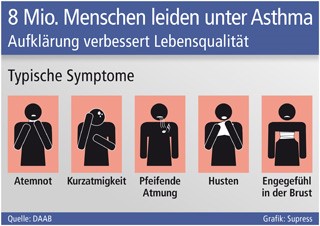 sup.- Asthma ist eine Volkskrankheit, von der Schätzungen zufolge rund acht Mio. Deutsche betroffen sind. Laut Informationen des Deutschen Allergie- und Asthmabundes (DAAB) wird zwischen „Allergischem Asthma“, „Nicht-Allergischem-Asthma“ sowie einer Mischform aus diesen Asthma-Typen unterschieden. Unabhängig von der Art liegt bei Asthma eine chronische, entzündliche Erkrankung der Atemwege vor, die eigentlich mit einem angepassten Lebensstil und modernen Medikamenten gut behandelbar ist.