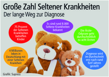 Der Begriff Seltene Krankheiten signalisiert auf den ersten Blick, dass es nur wenige Menschen gibt, die an solchen Erkrankungen leiden. Das ist allerdings nicht der Fall. Rund vier Millionen Menschen, Kinder und Erwachsene, sind nach Schätzungen in Deutschland von solchen Erkrankungen betroffen. Mit rund 75 Prozent der Fälle leiden daran vor allem Kinder. Der Begriff der Seltenen Krankheit signalisiert eher, dass die Ärzte in der Praxis selten mit diesen Krankheiten konfrontiert werden. Es gibt bis zu 8.000 solche Erkrankungen. Diese kann ein Mediziner, da sie in seinem Praxisalltag nur selten vorkommen, natürlich nicht alle kennen. Und hier liegt das eigentliche Problem. Den Patienten, die spüren, wie ihre Krankheit mit zunehmenden Einschränkungen und Behinderungen fortschreitet, wird nicht geholfen. Behandeln kann man nur Krankheiten, die man kennt und erkennt.