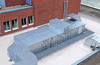 Zu diesen Standard- bzw. Pflichtaufgaben für Klimageräte kommt gerade in Nichtwohngebäuden meistens noch die Kür in Form von diversen Spezialfunktionen. So gibt es beispielsweise in Krankenhäusern besondere Anforderungen an die Lufthygiene durch Keim- und Schadstoff-Filter. In Rechenzentren spielt die Kühlung eine maßgebliche Rolle und das notwendige Frischluftvolumen großer Sport- oder Versammlungsstätten verlangt ebenfalls individuelle Lösungen. Für jede Einzelplanung müssen darüber hinaus die jeweiligen Dimensionen der Bauten, die erwartete Besucherfrequenz und natürlich die örtlichen Gegebenheiten zur Installation berücksichtigt werden. Deshalb kann Klimatechnik nicht als Konfektionsware im Einheitslook gekauft werden. Vielmehr ist es für die Planer wichtig, auf eine möglichst große Flexibilität bei der Aufstellung und beim Funktionsumfang der Geräte zu achten. Den Maßstab für Variabilität setzen heute Modellreihen wie die Klimageräte KG-Top des Systemanbieters Wolf Heiz- und Klimatechnik (Mainburg), die in 26 verschiedenen Leistungsgrößen verfügbar und deren Funktionen für jedes Projekt bedarfsgerecht konfigurierbar sind. Die einzelnen Aufgaben der Anlage sind dann Teil eines vernetzten Gesamtsystems aus Klimatisierung, Wärmeerzeugung und Lüftung (www.wolf-heiztechnik.de). Und wenn die Dimensionierung aufgrund des großen Leistungsbedarfs so ausfällt, dass nur eine Montage auf dem Gebäudedach in Frage kommt, hat diese Geräte-Familie auch dafür die passende Antwort: Speziell entwickelte Rahmenkonstruktionen sind für Transport und Montage zerlegbar, ohne dass sich im späteren Betrieb an den Verbindungspunkten verlustreiche Thermobrücken bilden können. Darüber hinaus sind Bauweise und Materialien bei einer Dachaufstellung so wetterfest ausgelegt, dass einem Einsatz der Anlage auch bei schwankenden Witterungsbedingungen nichts entgegensteht.