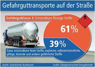 Unternehmen oder Gewerbebetriebe außerhalb der Logistikbranche brauchen diese Detailkenntnisse nicht zu haben, aber auch sie sollten beispielsweise als Auftraggeber oder Empfänger von Gefahrguttransporten auf eine fachkundige Durchführung auf höchstem Niveau Wert legen. Das betrifft unter anderem jede Firma, an deren Standort Heizöl zur Wärmeerzeugung benötigt wird. Hier gibt die Bestellung bei einem Lieferanten mit dem RAL-Gütezeichen Energiehandel die Sicherheit, dass die Fahrten stets von gut ausgebildeten Profis mit vorschriftsmäßig ausgestatteten Tankwagen durchgeführt werden. Lagerhaltung, Fahrzeugflotte, Liefertechnik, Zähleranlagen sowie die Einhaltung aller sicherheitsrelevanten Vorschriften werden bei Brennstoff-Lieferanten mit diesem Qualitätsprädikat regelmäßig extern überprüft (www.guetezeichen-energiehandel.de). Immerhin haben die Güter der Gefahrgutklasse 3, also von entzündbaren flüssigen Stoffen wie z. B. Heizöl, mit rund 61 Prozent den höchsten Anteil an allen Gefahrguttransporten auf der Straße. Heizölverbraucher können also durch die Beauftragung von Anbietern mit dem RAL-Gütezeichen in erheblichem Umfang zur Sicherheit im Straßengüterverkehr beitragen.